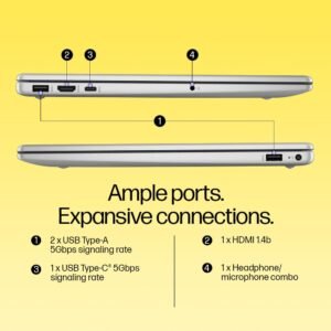 | Specification | Processor & Memory Features Processor Brand: AMD Processor Name: Ryzen 3 Quad Core Processor Variant: 7320U Clock Speed: Max Turbo Frequency 4.1 GHz Graphic Processor: AMD Radeon Graphics RAM: 8 GB DDR4 Storage Type: SSD SSD Capacity: 512 GB General Sales Package: Laptop, Power Adaptor, User Guide, Warranty Documents Model Number: 15-fc0500AU / 15-fc0154AU Part Number: 9D3M8PA / BV2W0PA#ACJ Model Name: 15-fc0154AU Series: HP 15 (2024) Color: Silver Type: Thin and Light Laptop Suitable For: Processing & Multitasking MS Office Provided: Yes Display & Audio Features Screen Size: 39.62 cm (15.6 Inch) Screen Resolution: 1920 × 1080 Pixels Screen Type: Full HD, Micro-Edge, Anti-Glare, 250 nits Brightness, 45% NTSC Touchscreen: No Speakers: Yes Internal Mic: Yes Dimensions & Weight Dimensions (W × D × H): 359.8 × 236 × 18.6 mm Weight: 1.59 Kg Additional Features Disk Drive: Not Available Web Camera: HP True Vision 1080p FHD Camera Keyboard: Full-size, Soft Grey Keyboard with Numeric Keypad Operating System OS: Windows 11 Home Ports & Slots USB Ports: 1 × USB Type-C (5 Gbps, Data Transfer only; No charging or external display support) 2 × USB Type-A (5 Gbps) Connectivity Features Wireless LAN: Realtek Wi-Fi 6 (1×1) Bluetooth: v5.3 |
