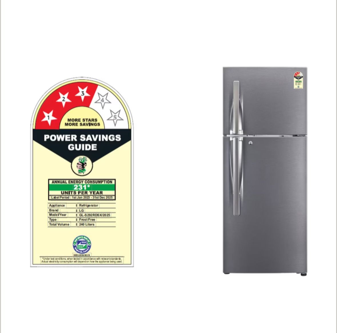 The LG GL-S292RDSX is a 240-liter 3-star rated frost-free double door refrigerator designed for small families of 3-5 members. It features a Smart Inverter Compressor for energy efficiency and quieter operation. The refrigerator includes advanced features like convertible cooling, express freeze, and LG’s Door Cooling+ technology which cools the interior faster and more evenly. It has a stylish Dazzle Steel finish, tempered glass shelves, multi-air flow, and an anti-bacterial gasket to keep food fresh longer.
