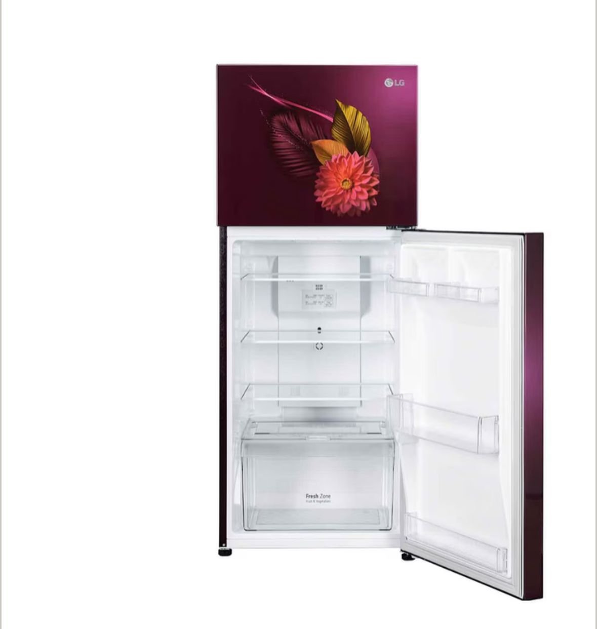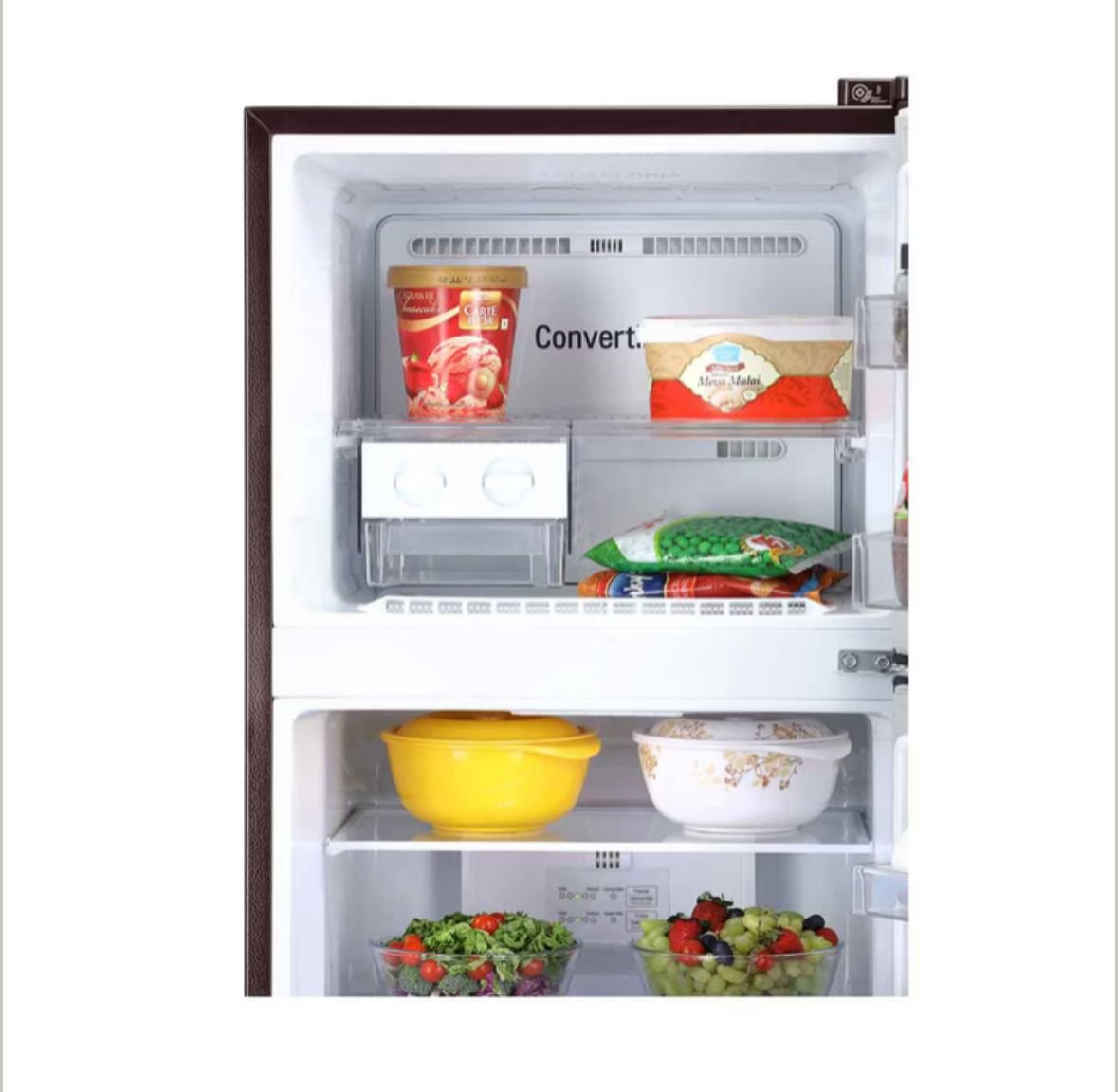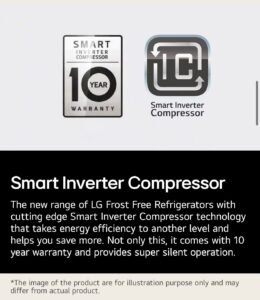 The LG GL-S292SRWY is a 240-liter 3-star rated frost-free double door refrigerator designed for small families of 3-5 members. It features a Smart Inverter Compressor for energy efficiency and quieter operation. The refrigerator includes advanced features like convertible cooling, express freeze, and LG’s Door Cooling+ technology which cools the interior faster and more evenly. It has a stylish Dazzle Steel finish, tempered glass shelves, multi-air flow, and an anti-bacterial gasket to keep food fresh longer.