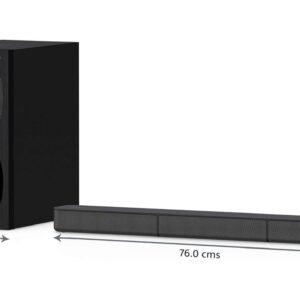 | Specification | General Sales Package: 1 Soundbar, 1 Subwoofer, 2 Satellite Speakers, 1 Remote Control, Audio Cable, 2 × AAA Batteries, User Manual, Set-up Guide, Warranty Card Model Number: HT-S20R Model Name: HT-S20R 5.1ch Home Theatre with Dolby Digital, Subwoofer & Rear Speakers Type: Soundbar-based Home Theatre System Color: Black, Grey Configuration: 5.1 Channel Power Source: AC Adapter Power Output (RMS): 400 W Frequency Response: N/A Impedance: N/A Bluetooth: Yes (Version 5.0) Bluetooth Range: 10 m Memory Card Slot: No Wall Mountable Satellite Speakers: Yes Built-in FM Radio: No Audio Features Technology Used: Dolby Digital Dimensions & Weight Soundbar (W × H × D): 84.3 cm × 24.8 cm × 5.53 cm Subwoofer (W × H × D): 192 mm × 387 mm × 342 mm Subwoofer Weight: 6.9 kg Product Details Configuration: 5.1 Channel Compatible Devices: Mobile, TV USB Ports: 1 Bluetooth: Version 5.0 Bluetooth Range: 10 m |