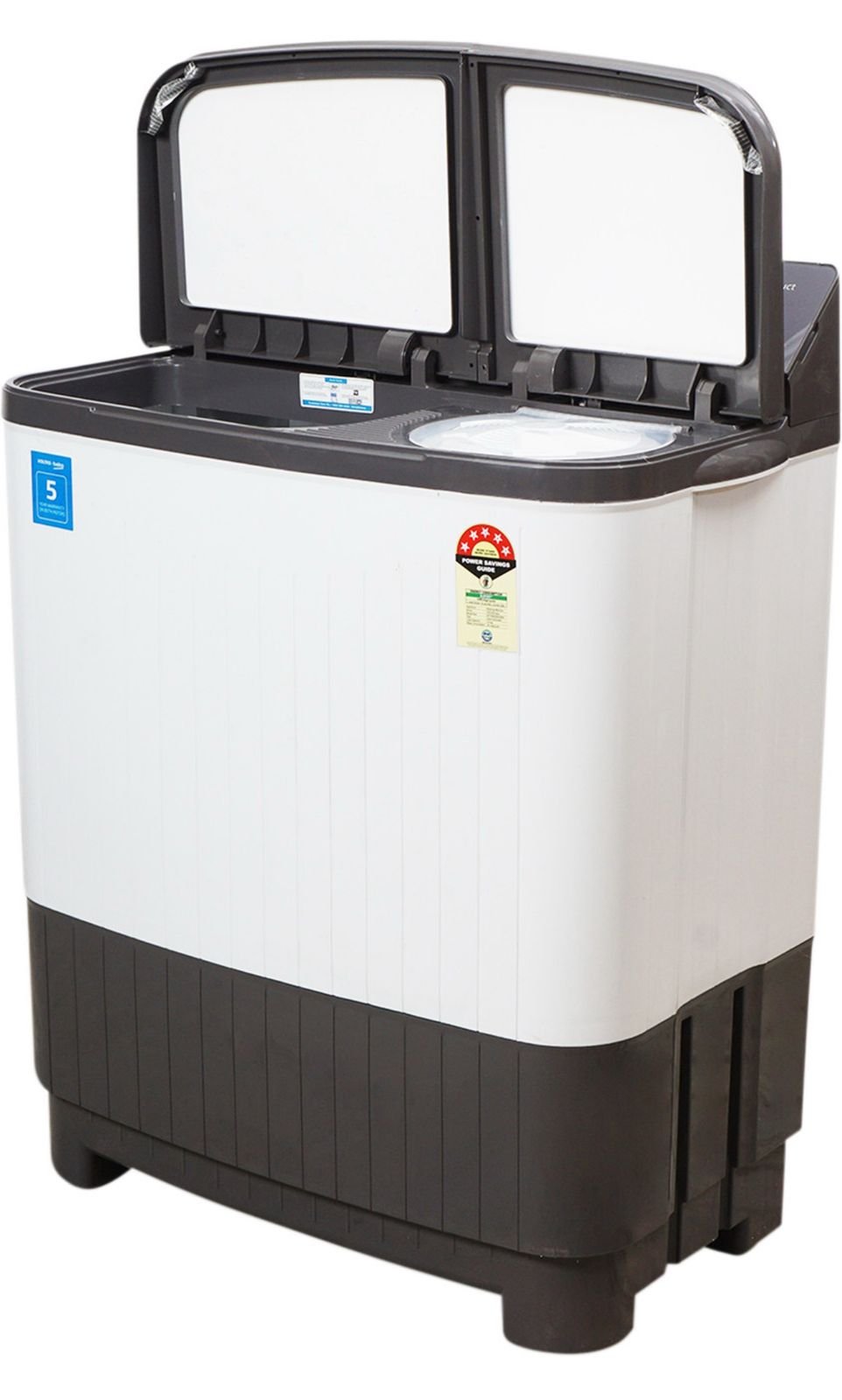 | Specification | General Features Brand: Voltas Beko Model Name: WTT85DGRG Function Type: Semi-Automatic Top Load Washing Capacity: 8.5 kg Washing Method: Pulsator Wash Maximum Spin Speed: 1400 RPM In-built Heater: No Steam Wash: No Energy Rating: 5 Star Water Consumption: 20 L/kg/cycle Color: Grey, Brown, White Shade: Grey Manufacturing Year: 2024 Rat Mesh: Yes Delay Start: No Wi-Fi Connectivity: No Body & Design Features Body Material: Durable Plastic Rat Protection Mesh: Yes Color Finish: Triple-tone design (Grey, Brown & White) Lid Type: Opaque (Standard) Convenience Features Digital Display: No Control Type: Manual Knob Controls Power Features Power Consumption: 0.0107 kWh/kg/cycle Power Requirement: AC 230–240 V, 50 Hz Dimensions & Weight Width: 83 cm Height: 100.5 cm Depth: 48 cm Weight: 28 kg |